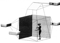 To experience the three-dimensionality the user is equipped with stereo glasses which makes it also possible to see his "playmates" in the CAVE. Stereoprojection and light sources from 4 sides enhance the three-dimensionality to such an extend that the visitor - receiving 96 stereo pictures