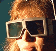 To see the virtual environment in stereo, users wear Stereographics' CrystalEyes stereo glasses made of liquid crystal. In order to see stereo properly, they have to be turned on by pressing a small button located on the right side of the frame. To turn them off, press the same button. They will not work if the user is facing away from the emitters.