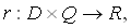 wobei D={d1, ..., dm} die Menge der Dokumente, Q die Menge der Anfragen und R eine Menge von "Wahrheitswerten", d. h. aus der Menge {0,1}, ist, die darüber Auskunft geben, ob ein Dokument relevant ist oder nicht. Diese Relation wird in der Regel durch die Befragung von Experten zu konkreten Anfragen und Dokumentmengen ermittelt und dann festgelegt.