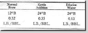 Tab.3: Hopfenausnutzung (1) – Hopfengabe in pound/barrel
