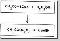 Die Esterbildung ist mit dem Hefewachstum verknüpft: Wird das Hefewachstum eingeschränkt, steigt die Esterproduktion. Aus dem Fettstoffwechsel der Hefe läßt sich dieser Zusammenhang erklären. Die Hefe verbraucht während der Wachstumsphase Acetyl – CoA für die Fettsäuresynthese, die aber nur stattfindet, wenn molekularer Sauerstoff vorhanden ist. Folglich ist die Sauerstoffkonzentration entscheidend für die Hefevermehrung, und, wenn kein Sauerstoff vorhanden ist, neigt die Hefe zur Produktion anderer Verbindungen wie z.B. der Ester (Abb.3) (14).