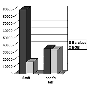 Since 1990, Barclays has seen an overall reduction in staff numbers, particularly in processing and administration.
